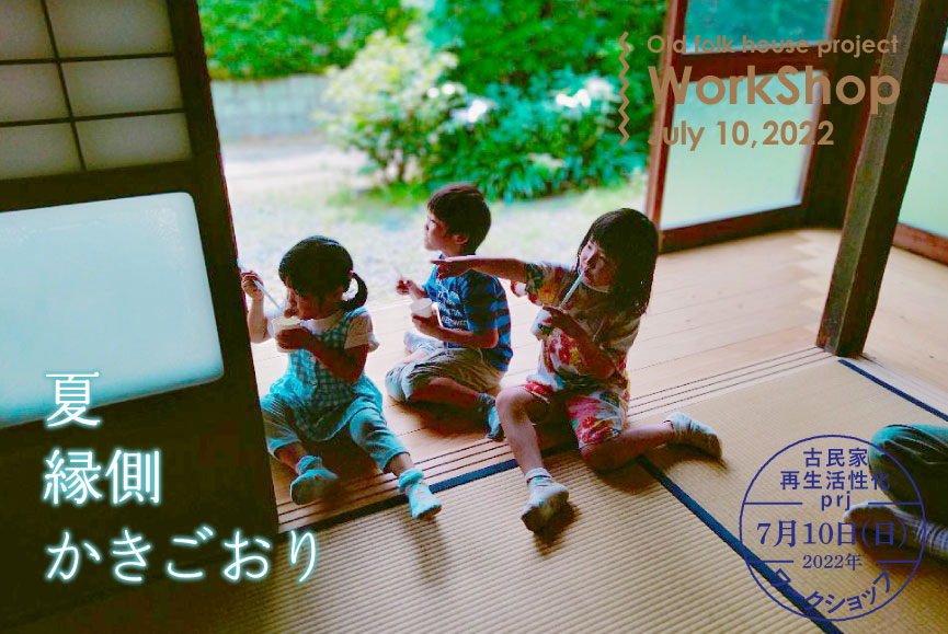 異例の早さで梅雨が明け(平年より20日も早い6月28日でした)、真夏日が続く中、今日は参院選の投票日でもありどれくらい集まってくれるか心配していた古民家ワークショップ、32℃を超える蒸し暑い日曜日にもかかわらず9組21人の親子が参加してくれました。