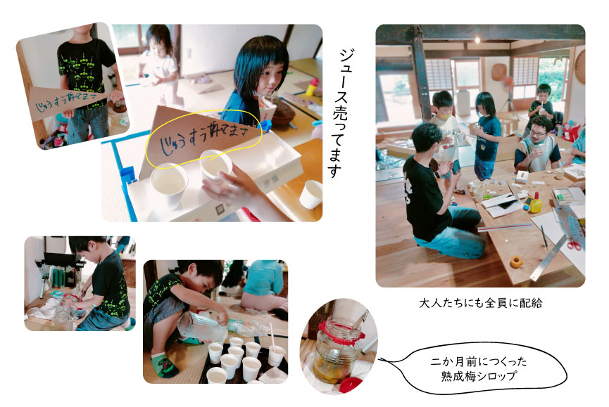 そして小さな子どもたち(小学低学年と保育園児)は「ジュース屋さん」です。