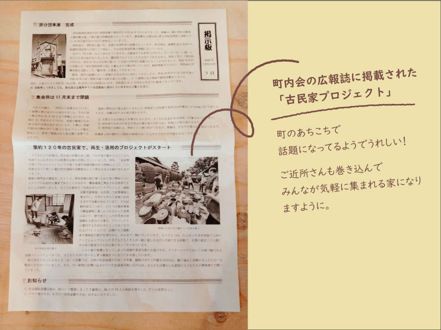 前回の6月6日の古民家ワークショップの内容が掲載された町内会広報誌を