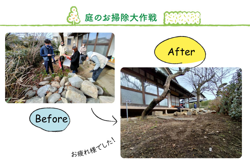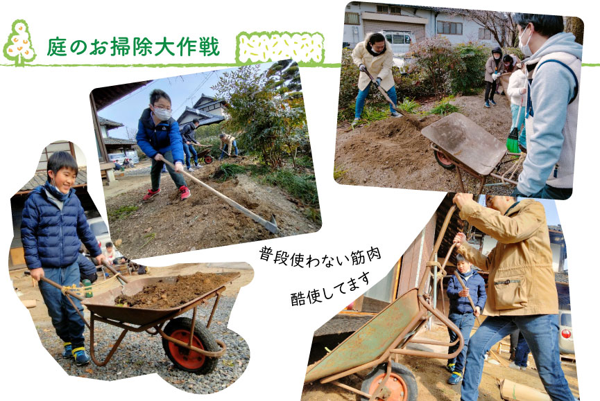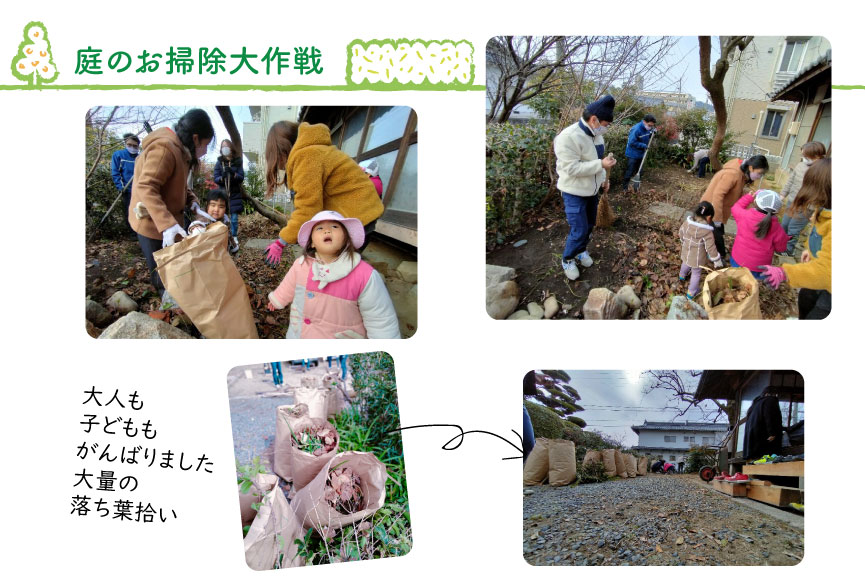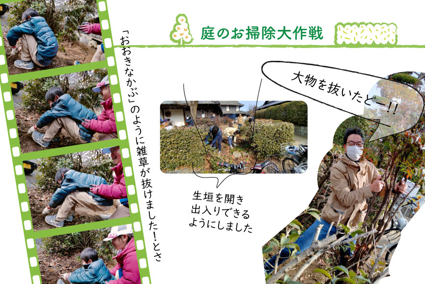 さあ大人も子どもも総出で庭のお掃除大作戦です!
