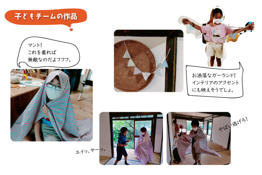 いただきもののたっぷりの布と木を、古民家にある道具を使って手作りし放題。