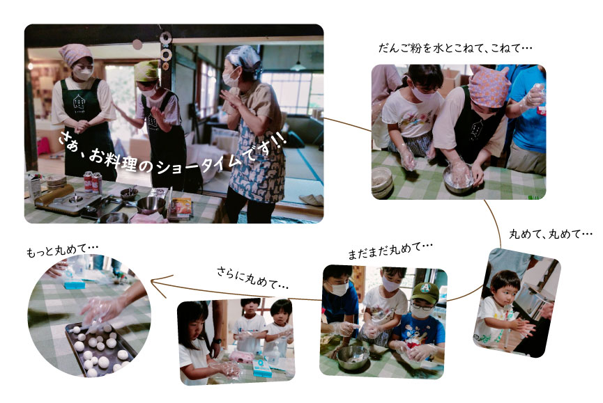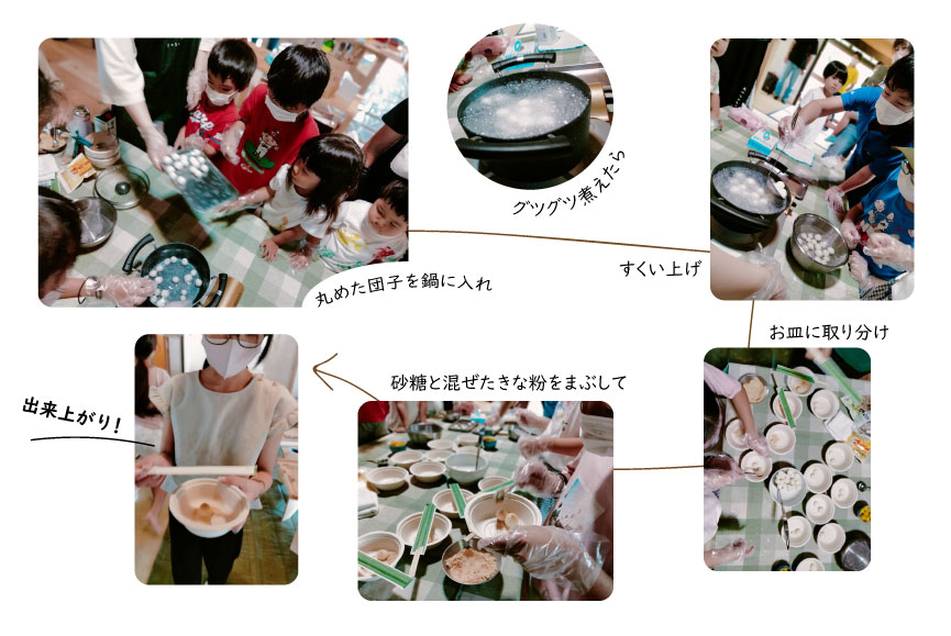 ただお団子を丸めて鍋に入れてすくい上げるだけでも、子どもたちには楽しい非日常体験!